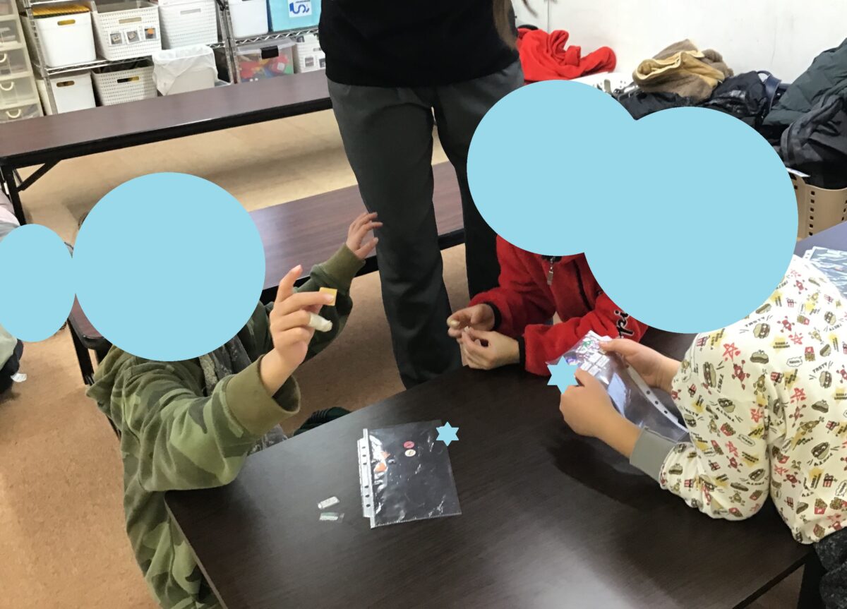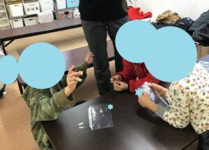 シール交換をする前に、まずはシール帳作りから行っています。くじ引き方式でシールをゲットしてもらい、「今日は電車のシールが出たよ!」「恐竜のシールが増えたよ!」などと友達同士で会話を楽しんでいます。また、好きなシールがゲットできなくても友達と交換するという手があるので、それも楽しみにしていられています!