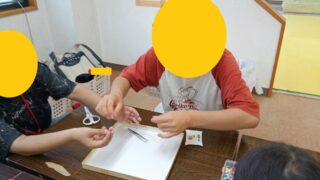 放課後等デイサービス ビーズでブレスレット作り こんにちは、ひふみ長野吉田教室です。吉田教室では余暇時間に時々ビーズでブレスレットを作る時があります。みんなピンセットで丁寧にビーズをつまんで器用に糸に通しています。ビーズの中には穴が小さすぎて見えないような物もありますが子ども達には見えて... 2025.09.18 放課後等デイサービス