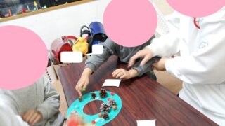 放課後等デイサービス リース作り♪ こんにちは、ひふみ長野吉田教室です。静かな活動でクリスマスに向けてリース作りをしました(*^▽^*)松ぼっくりやどんぐり、装飾用のボンボンなどつけてみんなで一つのリースを完成させていきます!(^^)!徐々にリースが彩られとてもかわいいリース... 2025.11.26 放課後等デイサービス
